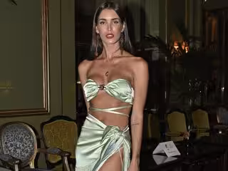 Presumiendo de su espectacular figura, la novia de Kiko Matamoros acaparó todas las miradas con un arriesgadísimo outfit que dejó sin respiración a más de uno. Un escueto conjunto de seda en verde manzana compuesto por un top palabra de honor que más bien parecía la parte de arriba del bikini con dos tiras cruzadas por el abdomen - que menudos abdominales tiene la modelo - y una falda con abertura infinita formada por un mantón de manila que le daba el toque flamenco a su look. Un estilismo no apto para cardíacos con el que Marta eclipsó a la mismísima Infanta Elena.