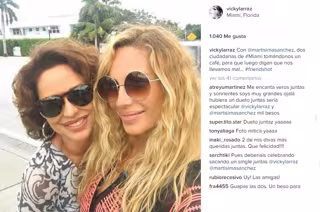 Pero lo cierto es que la vida se ha empeñado en juntar a Vicky Larraz y Marta Sánchez; ambas han cosechado éxitos en sus carreras en solitario, han participado en Tu Cara Me Suena y son icono de los 80', pero no solo eso une a las cantantes. Las dos han fijado su residencia en Miami, lugar donde han quedado para tomar un café y seguramente aparcar sus diferencias. "Para que luego digan que nos llevamos mal", han sido las palabras con las que Vicky ha querido dejar patente de la buena relación y constancia del encuentro.