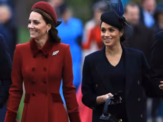 Tras varios meses de rumores sobre la mala relación que podrían tener Kate y Meghan, las duquesas charlaron muy animadamente en el recorrido a pie hacia la iglesia y posaron muy sonrientes a las puertas del templo de Sandringham antes de la ceremonia.