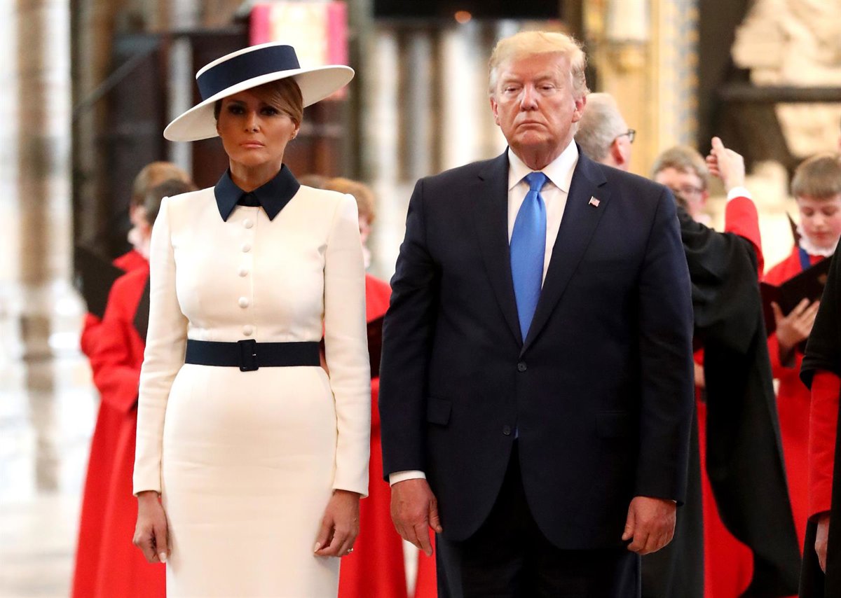 El presidente Donald Trump y la primera dama de Estados Unidos han viajado hasta Reino Unido para una visita de Estados. Y en cuanto las puertas del avión se abrieron, todos los focos mediáticos han ido para el vestido de Melania Trump.
