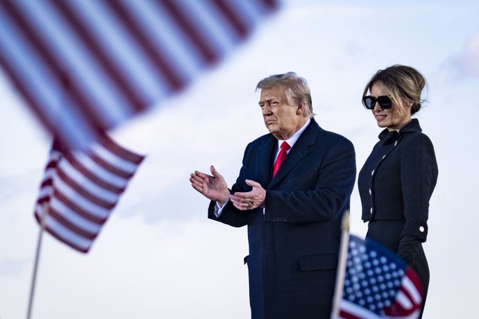 El presidente de los Estados Unidos, Donald Trump, y la primera dama, Melania Trump, durante la ceremonia de despedida en la Base de la Fuerza Aérea Andrews, Maryland, Estados Unidos, a 20 de enero de 2021. - EUROPA PRESS