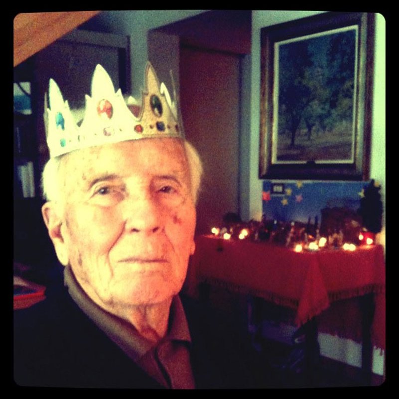 "Mi padre era el rey de su casa como lo son todos vuestros padres de las vuestras. Por eso comparto con vosotros esta fotografía que le hicieron el último día de Reyes. No debió dudar ni un minuto en ponerse la corona de papel y comerse muy a gusto un tortel lleno de sorpresas que él no sabía que contenía su propio viaje al otro mundo".