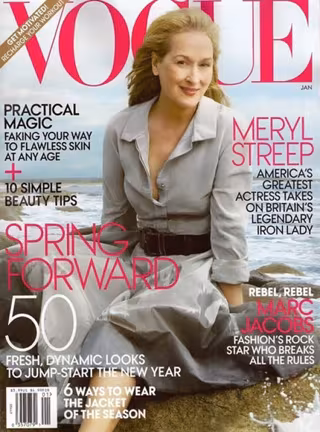Por fin ese 'Diablo que viste de Prada' protagoniza la revista que satirizó en la conocida película. A sus 62 años y más espléndida que nunca, la actriz vuelve a demostrar por qué es una de las más grandes y ya de paso ha batido un récord: convertirse en la mujer más madura que ha posado para esta revista. Sin duda un ejemplo de que la clase, el savoir faire y la feminidad no tienen fecha de caducidad.