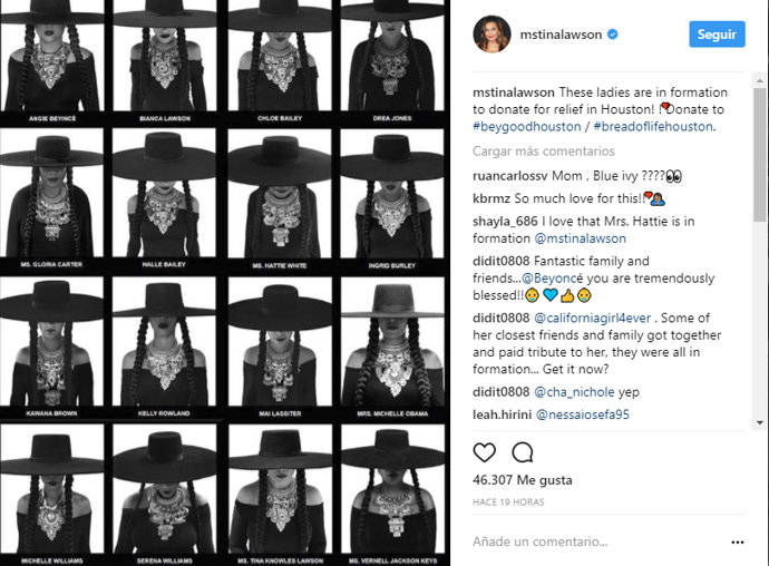 Encima de las instantáneas reza una frase: "Felicidades Beyoncé de tu familia y amigos". Pero este proyecto se trata de algo más que un homenaje a la artista, otro mensaje en la misma página pide a los fans sus donaciones para ayudar a las personas afectadas por el huracán Harvey, que precisamente ha llegado especialmente al corazón de Beyoncé por haber sucedido en su ciudad natal, Houston.