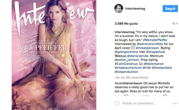 "Sin embargo, fui muy cuidadosa con lo que filmaba y si era compatible con el horario de los niños o no. Me puse tan exigente que se me fue el tiempo". Así justificaba Michelle Pfeiffer su ausencia de Hollywood en los últimos cuatro años en una entrevista a Interview, en la que anuncia su retorno a la primera línea cinematográfica con tres películas: The Wizard of Lies (HBO), Mother junto a Jennifer Lawrence y la nueva versión de Asesinato en el Orient Express, en la que comparte cartel con Johnny Depp, Penélope Cruz y Daisy Ridley.