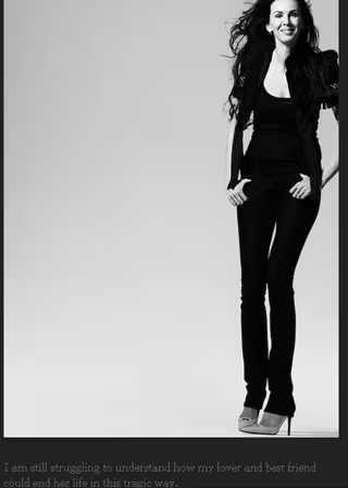 "Todavía estoy luchando por entender cómo mi amor y mejor amiga ha acabado con su vida de esta trágica manera. Pasamos muchos años maravillosos y habíamos hecho una gran vida juntos. Tenía gran presencia y su talento era muy admirado, no menos por mí. He sido tocado por los tributos que la gente le ha hecho a ella, y también los mensaje de apoyo que he recibido. Nunca te olvidaré". Son las duras palabras de un hombre roto de dolor por la pérdida de su novia, un mensaje que publicaba en su web apenas 24 horas después de conocer la noticia.