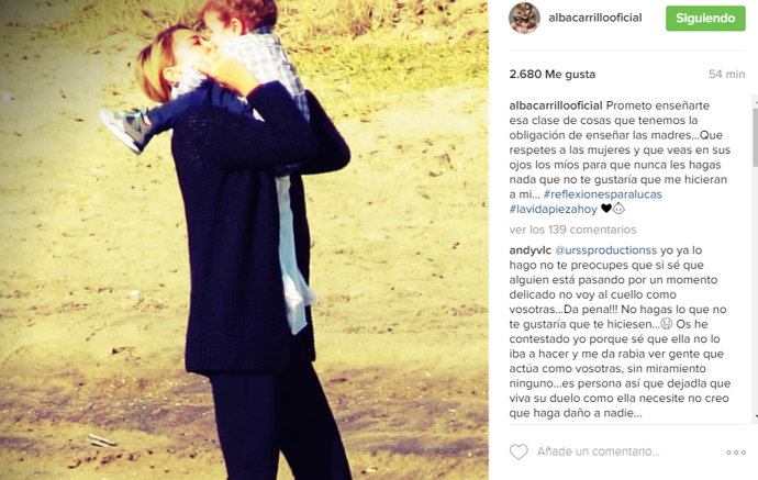 El último ataque de la modelo nos lleva a confirmar la mala relación que mantenía con la madre del tenista. Alba ha subido una foto más a su cuenta de Instagram en la que aparece con su hijo Lucas en brazos muy cariñosa y una clara indirecta: "Prometo enseñarte esa clase de cosas que tenemos la obligación de enseñar las madres... Que respetes a las mujeres y veas en sus ojos los míos para que nunca les hagas nada que no te gustaría que me hicieran a mi...", aunque ha tenido que arrepentirse de su acto de impulsividad porque borró la foto minutos después de subirla, pero ¿Culpa Alba a la madre de Feliciano de la actitud de su hijo?