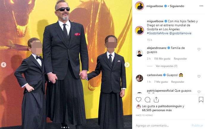 Miguel Bosé siempre ha sido muy reservado tanto con su vida privada como con la de sus hijos, por lo que ha sorprendido mucho cuando ha acudido a la premier de Godzilla en Los Ángeles acompañados de dos de sus pequeños, Tadeo y Diego. Aunque sin duda esta no ha sido la única sorpresa.