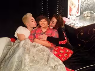 Miley Cyrus ha querido hacerle el mejor regalo de cumpleaños a su hermana pequeña, Noah. La cantante publicó en su perfil de Twitter una fotografía en la que aparecían las dos tumbadas en la cama y en medio una figura de cartón del joven Harry Styles, integrante de la banda 'One Direction'.