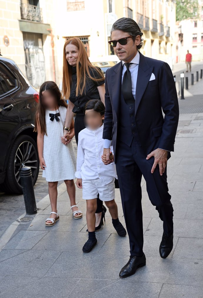 Julián Porras, Olivia de Borbón y sus hijos, Flavia y Fernando Enrique, asisten a la misa funeral en memoria de Francisco de Borbón y Escasany que se celebra en la Iglesia Catedral Castrense, a 16 de junio de 2025, en Madrid - EUROPA PRESS REPORTAJES