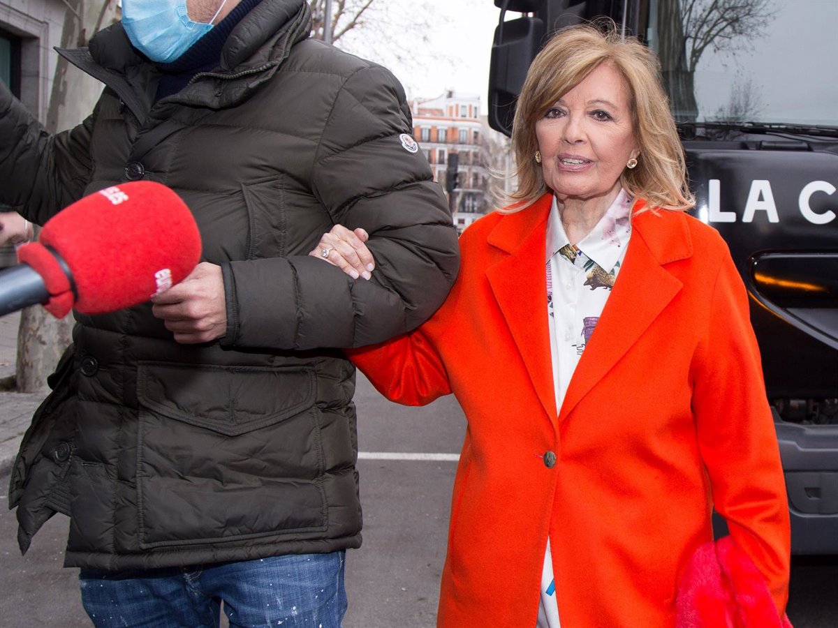 Muy seria, y tras realizar unos recados en compañía de su inseparable asistente, Gustavo, la malagueña ha llegado a su mansión a las afueras de la capital sin nada que decir sobre la última polémica que protagoniza su familia. Muy seria, María Teresa no reacciona a las preguntas relacionadas con el enfado de Alejandra y Carmen e, impasible, mira al frente intentando capear esta guerra que llega cuando por fin parecía que las cosas empezaban a sonreírle al preparar nuevo programa en Mediaset.