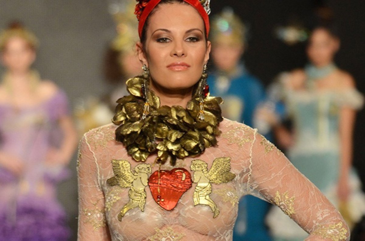 Jessica Bueno dio el do de pecho en el desfile de Rosalía Zahino y Encarnación Solá. Bajo el título de "En Relevé" las diseñadoras reinventan la moda flamenca. Encajes, sedas, terciopelo, brillantes, y ostentosos collares han dado color a una pasarela que bien podría ser la misma Venecia o un viaje al pasado más cortesano.