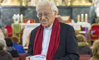 Padre Ángel: Sí, son los libros de la misericordia que con motivo del año santo de la misericordia hoy hay la presentación de estos libros, fascículos de autores y uno de ellos es Vestir al desnudo, libro que he hecho y después vamos a inaugurar la puerta santa de los sin techo, los que entran aquí y sale y puede estar esto abierto y uno se siente feliz y gozoso con el corazón encogido al ver tanta pobreza y tanta gente que no puede tener un colchón para dormir.
