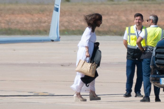 Minutos más tarde, ese avión aterrizaba en Valencia y allí sí que podíamos ver a la pareja de Luis Miguel. Luciendo un vestido blanco, gafas de sol y luchando contra el viento que hacía que le revolvía su inconfundible melena... Paloma se dejaba ver junto a sus hijas.