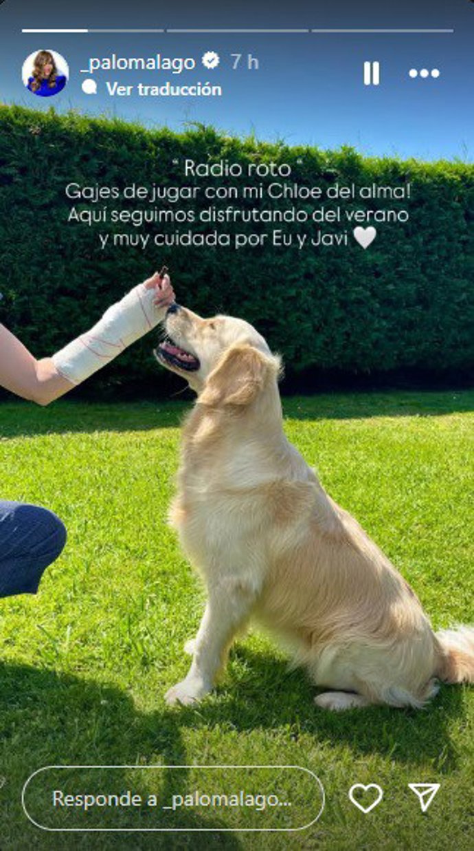 Aunque la presentadora ha intentando mantenerse al margen de las cámaras en estas semanas, un nuevo traspiés le ha hecho tomarse el verano con mayor tranquilidad y es que ha sido ella misma la encargada de contar lo sucedido a traves de su cuenta de Intagram. "Gajes del oficio de jugar con mi Chloe del alma" ha escrito la presentadora junto a una imagen en la que se le ve el antebrazo vendado en el jardín de su casa tras haber sufrido un pequeño accidente mientras jugaba con su mascota.