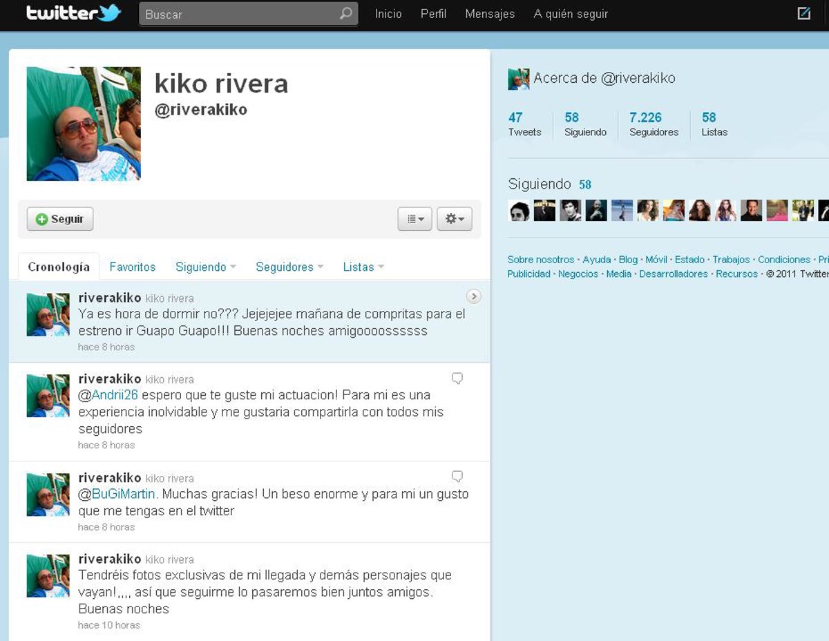 El hijo de Isabel Pantoja ha decidido iniciarse en el mundo del microblogging y ha creado una cuenta en Twitter, '@riverakiko', que desde este sábado ya cuenta con 7.226 seguidores.