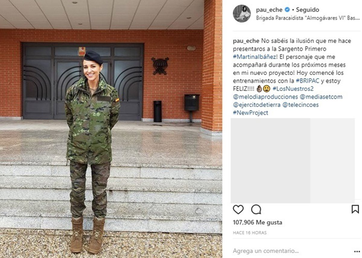Ajena a los rumores sobre su relación con Miguel Torres, Paula Echevarría está volcada en sus proyectos profesionales. Este martes, la actriz publicaba en su Instagram una fotografía con el atuendo de su nuevo personaje, la Sargento Primero Martina Ibáñez, en la nueva temporada de Los Nuestros.