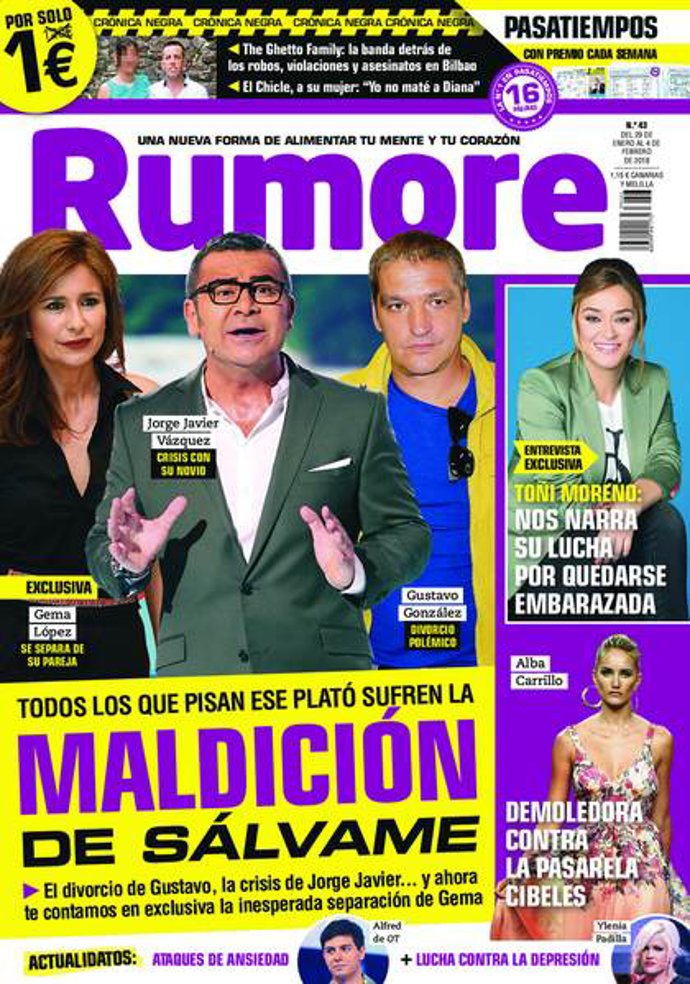 La revista Rumore nos habla de la maldición de Sálvame en cuanto a las relaciones en pareja. Si hace unas semanas nos enterábamos de la crisis sentimental de Jorge Javier Vázquez con su pareja con la que comparte su vida desde hace unos 10 años, ahora la colaboradora ha decidido poner fin a su matrimonio con su marido, con el que tiene una hija en común, Nadia de 10 años.