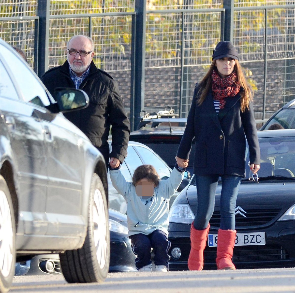 Paula Echevarría, fiel a su estilo, iba muy fashion hasta para ir a la puerta del cole. Abrigada con una chaqueta azul, un fular rojo estampado y una gorra de inspiración militar, remató el conjunto con una camiseta de rayas marineras y unas botas tipo UGG en color rojo.