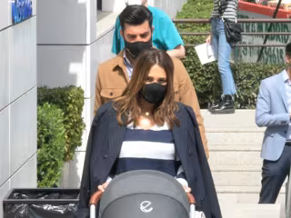 Visiblemente recuperada, la actriz ha presumido de estilo con unos sencillos vaqueros, unas cómodas zapatillas depotivas, un suéter de rayas marineras en azul y blanco y una blazer de raya diplomática. Radiante, y más guapa que nunca, Paula fue la encargada de llevar el carrito con el pequeño Miguel dentro mientras su chico, de lo más pendiente, le seguía a pocos pasos.