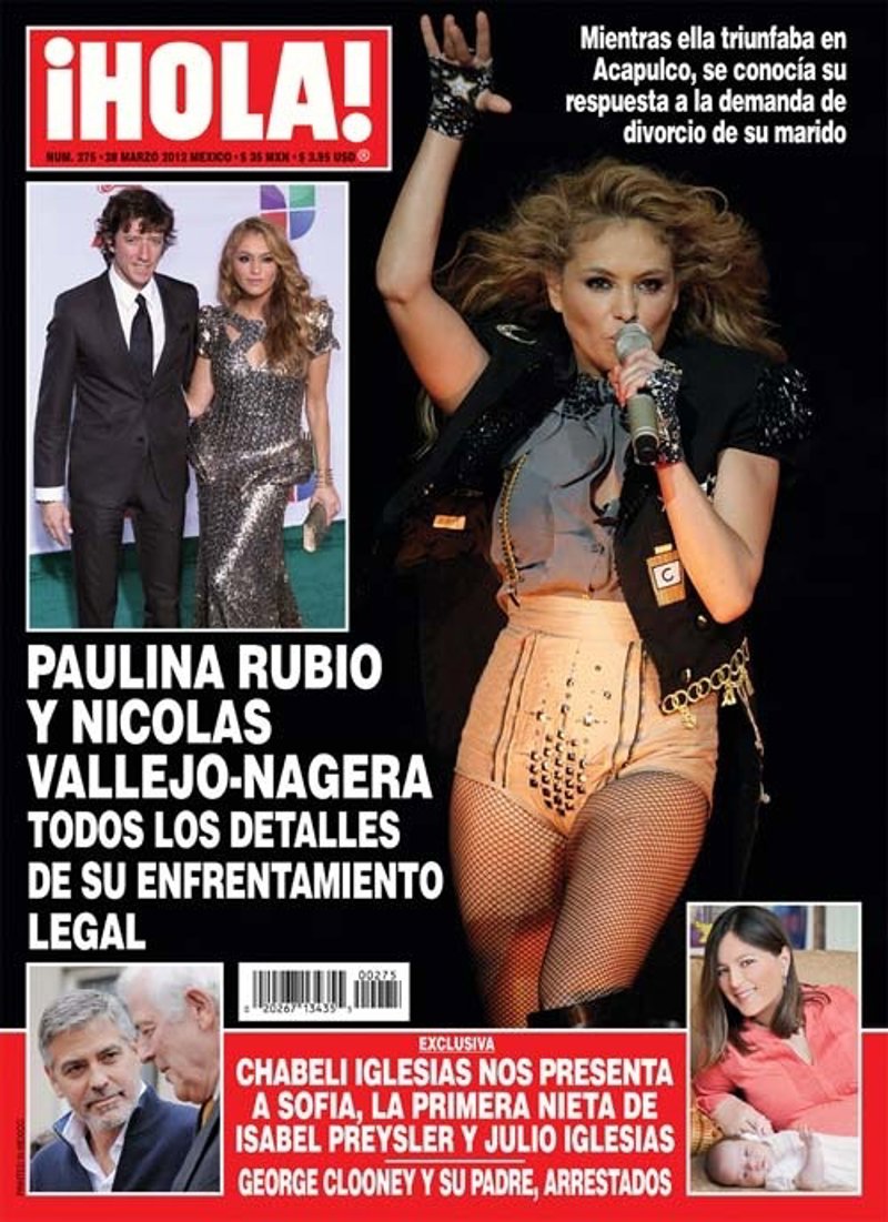 Ocupa gran parte de la portada de la edición mexicana de Hola y destaca a una Paulina Rubio exultante en uno de sus conciertos añadiendo el comentario: "Mientras ella triunfaba en Acapulco, se conocía su respuesta a la demanda de divorcio de su marido".