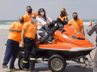 Muy divertida a pesar del complicado momento personal que vive, Paz no dudó en fotografiarse bailando con algunos de los trabajadores de Protección Civil ya que su famoso baile de ‘Jerusalema’ se ha convertido en un imprescindible en sus redes sociales. Con un look muy cómodo y apropiado para la ocasión, la presentadora lució pantalón vaquero con chaqueta de lana en azul celeste y botines en negro que combinó a la perfección con uno de los bolsos de la colección que ha lanzado recientemente junto a su hija Anna Ferrer.