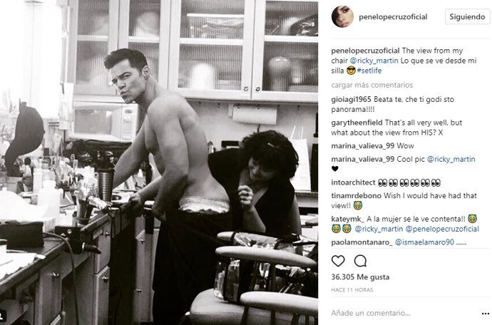 Penélope Cruz no se ha podido resistir a subir una foto de lo más sexy del cantante Ricky Martin con el que se encuentra rodando una nueva serie de Netflix sobre la vida del magnate de lo moda Gianni Versace.
