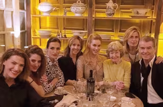 El que fue agente especial 007 se ha ido de misión a cenar junto a Nieves Álvarez, Laura Sánchez y Helen Svedin, las tres guapísimas y chicas de la agencia internacional SS&M, encargada de la cena.