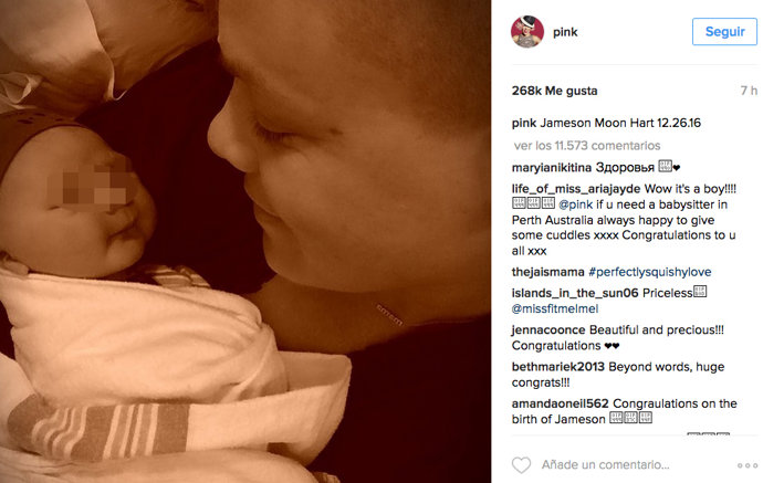 La cantante y el expiloto profesional de motocross dieron la bienvenida a su segundo hijo, Jameson Moon, el pasado lunes 26 de diciembre. "Quiero a mi papá", escribió la cantante junto a una fotografía de su marido con el pequeño en brazos compartida en redes sociales.