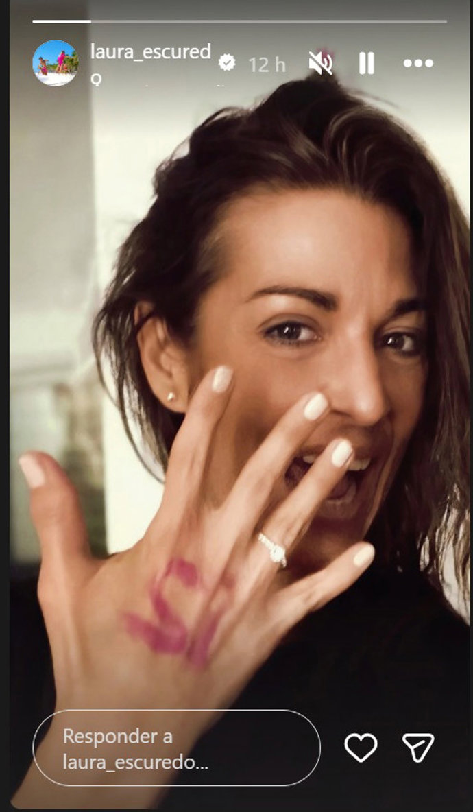 También Laura ha presumido de su felicidad en sus redes sociales, enseñando su espectacular joya de pequeños brillantes con una gran sonrisa y un significativo "Sí" escrito con un color de labios rosado en el dorso de su mano.