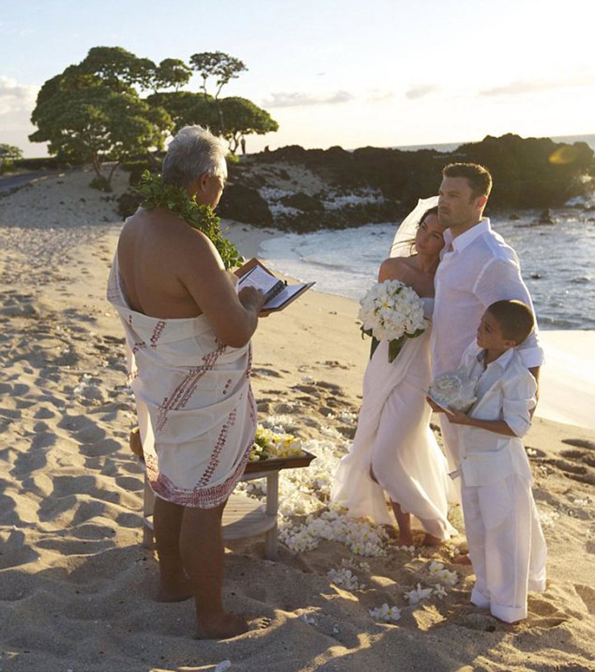 Los demás invitados fueron el fotógrafo que captó los mágicos momentos y el 'kahuna', una especie de sacerdote hawaiano. El 'Daily Mail' ha publicado las fotos de la particular ceremonia donde se ve sonriente y feliz a la protagonista de 'Transformers'.