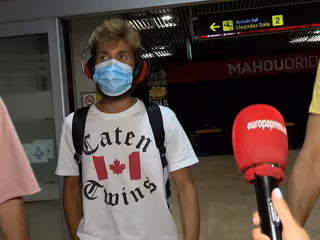 A pesar de las insistencia de los periodistas, Alejandro Albalá no ha escuchado ninguna de las prensas que le realizaban porque iba con los famosos casos que la organización del programa pone a los concursantes cuando regresan a España. Aislado y sin poder entender nada de lo que le decía la prensa, el exsuperviviente sí que se ha reído y ha hecho gestos a las cámaras.