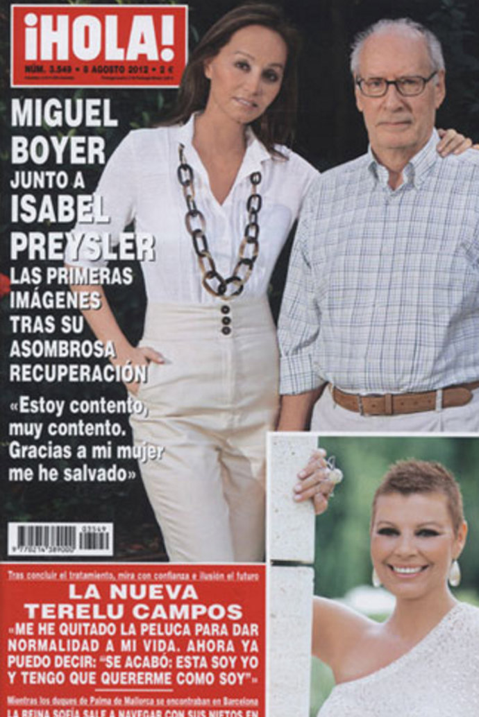 Lo cierto es que hemos tirado de cabeza de en CHANCE y hemos recordado que en esas fechas Isabel Preysler y Miguel Boyer protagonizaban una fastuosa portada con la revista ¡Hola!, el primer y único posado del matrimonio en conjunto -ya que él entendía lo que representaba la Reina de corazones pero se deligaba de protagonizar ninguna exclusiva familiar- que salía al mercado el 1 de agosto de 2012 (aunque feche el 8 de agosto que es cuando vence el ejemplar). Allí el empresario y exministro de Felipe González declaraba: "Estoy contento, muy contento. Gracias a mi mujer me he salvado", entre otras declaraciones.