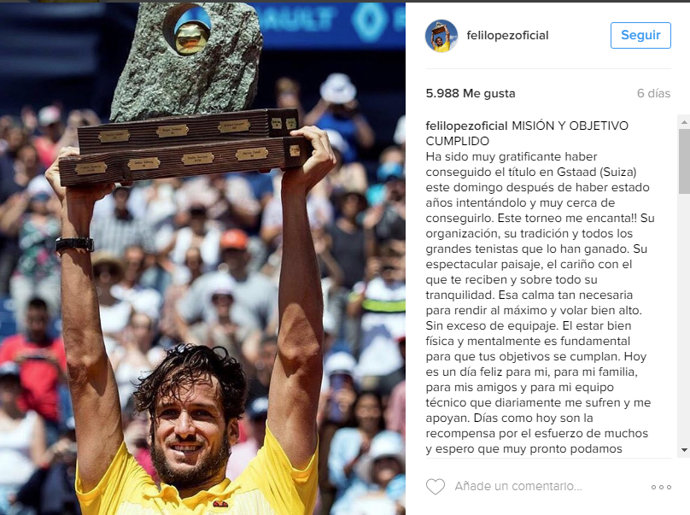 Hace seis días el tenista demostró estar en perfecta forma física, callando bocas a los que le denominaban un "deportista mayor", y se alzó con el primer premio del torneo de Gstaad en Suiza, después de muchos años intentándolo.