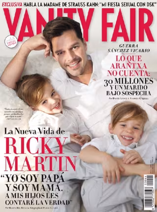 El cantante de 36 años fue padre en agosto, y hasta el momento no había posado con su nueva familia. A pesar de que ya habíamos visto fotos de los mellizos en su cuenta de twitter, no suele hacer declaraciones, y mucho menos hablar de su vida privada. Este mes, la revista española Vanity Fair ha sido la encargada de entrevistar y fotografiar en exclusiva a Ricky Martin.