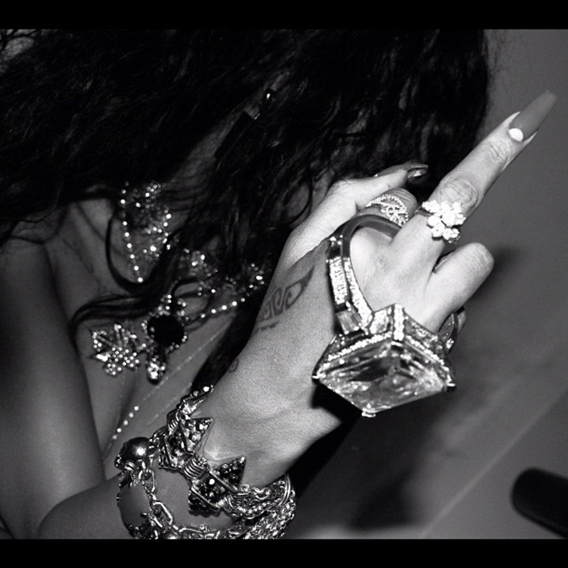La de Barbados vuelve a dar la nota en Twitter. Rihanna nos tiene acostumbrados a polémicas, gestos obscenos, enfrentamientos...vía redes sociales, de modo que su último gesto no sorprende a nadie. La cantante ha publicado en Twitter una foto subida a Instagram con el lema "No words....just Diamonds!!" en la que dedica una peineta a alguien, pero ¿a quién irá dedicada?