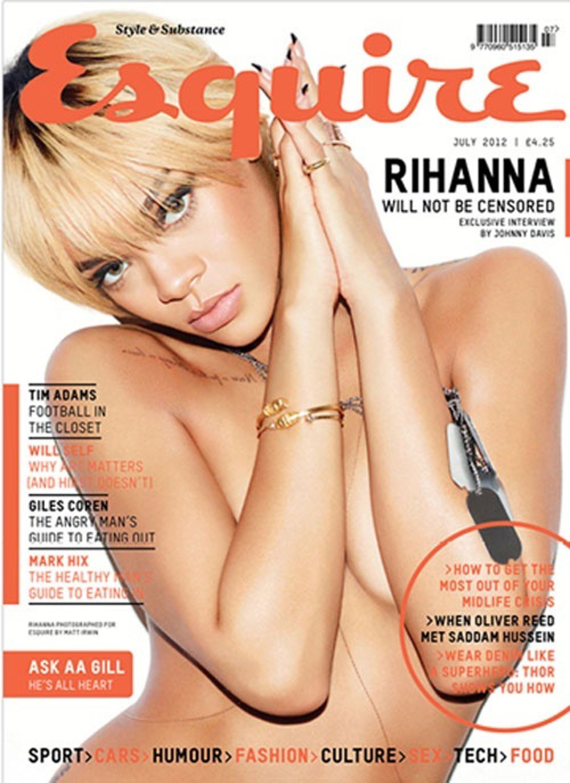 Ya no es extraño ver a la de Barbados en topless, de hecho, resulta de lo más normal ver a Rihanna como Dios la trajo al mundo. Aprovechando que ahora ella es una de las artistas del momento y las revistas se disputan que protagonice su portada.
