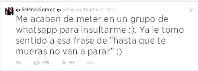 Hoy comenzamos el día con una noticia de lo más triste. Miriam, una fan de Selena Gomez, se ha suicidado víctima del ciberacoso que estaba sufriendo. La joven había dado muestras en su cuenta de Twitter del bullying que sufría día a día.