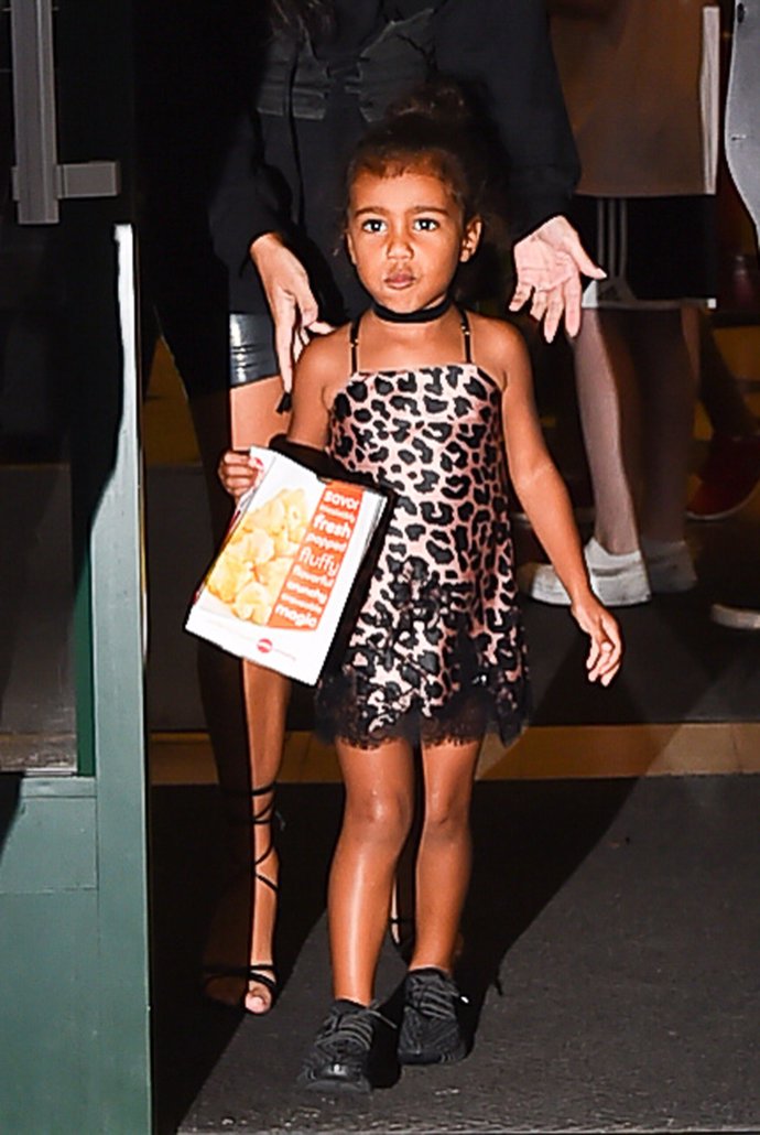 Después la familia fue al cine, donde pudimos verles a la salida del mismo. La pequeña North West, con un minivestido de animal print, salía realmente feliz con una bolsa de palomitas en la mano.