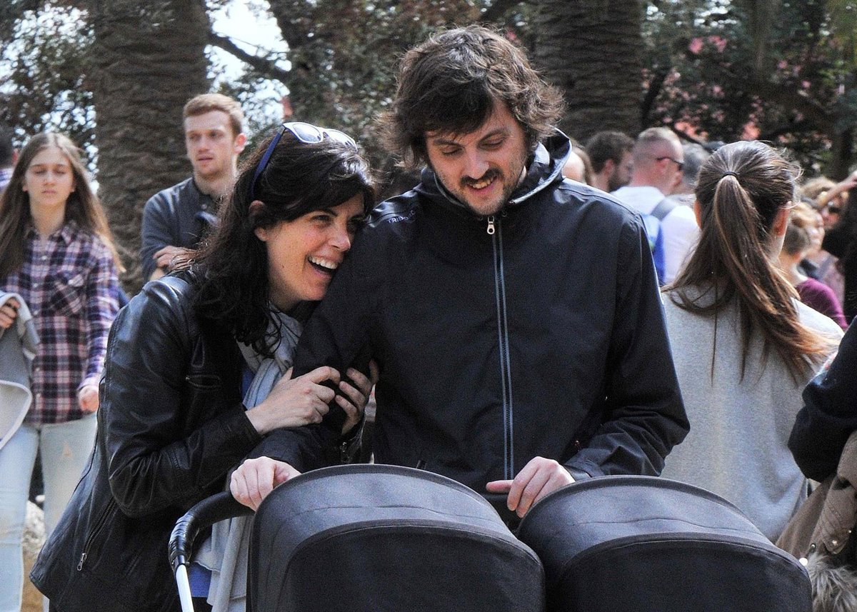 Los pequeños, con diez días de vida, iban dormiditos en su cochecito doble lo que permitió a Samanta y Raúl sentarse en una terraza de este famoso parque diseñado por Gaudí para poder charlar y tomar un café.