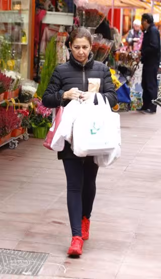 En esta ocasión vimos a la artista muy pendiente de que no faltara de nada de en su casa. Cuida con esmero la alimentación de su familia. Con un look cómodo e informal con leggins negros, plumífero negro y deportivas rojas, arrasó en uno de los mercados más prestigiosos de la capital. También aprovechó para hacer unas compras en la farmacia.