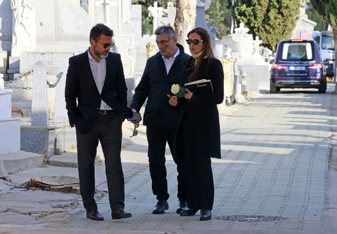 Acompañado por varios familiares, y con gafas de sol para intentar pasar desapercibido, el exsuegro de Iker Casillas ha caminado hasta el cementerio inmediatamente detrás de la periodista y de su hermana y, una vez finalizado el entierro, se ha quedado conversando varios minutos a solas con Sara -que portaba una rosa blanca y varios marcos con fotografías de su madre- y con su novio Jota, desmintiendo los rumores de distanciamiento y dejando claro que puede contar con él en estos momentos tan complicados.