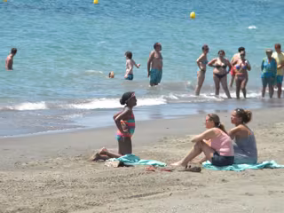 La hija de nueve años de los Obama, que llevaba un bañador de rayas de varios colores, se metió en el mar nada más pisar la playa de Costalita, junto con otros niños del grupo de amigos, mientras que su madre, que llegó con un pañuelo en la cabeza, no se dejó ver tanto.