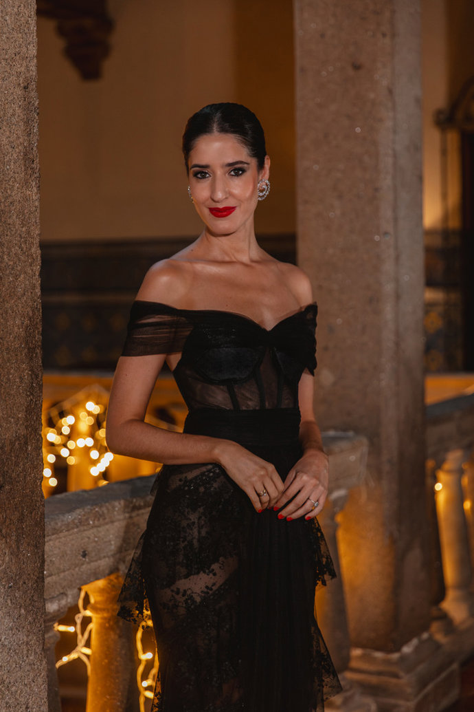 La creadora de contenido, conocida en redes como @invitada_perfecta, ha sido la encargada de dar las Campanadas de fin de año en la cadena autonómica y ha confiado nuevamente en Silvia Fernández para una noche tan especial. Para la ocasión, se ha decantado por un vestido negro muy especial: un modelo tipo bustier estructurado, confeccionado en tul, con cuerpo envarillado y una espectacular falda de encaje de chantilly rematada en volantes.