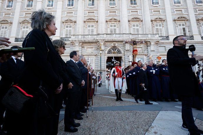 Un año más, Simoneta Gómez-Acebo se ha trasladado hasta el Palacio Real para presenciar la procesión del Cristo de los Alabarderos en la tarde del Viernes Santo. En esta ocasión, la prima de don Felipe lo ha hecho sola, sin la compañía de ningún otro miembro de la familia del rey como en otras ocasiones. Y es que, en la Semana Santa del 2024, en un año complicado para ella tras la pérdida de su hermano Fernando, estuvo arropada por doña Sofía y la infanta Elena.