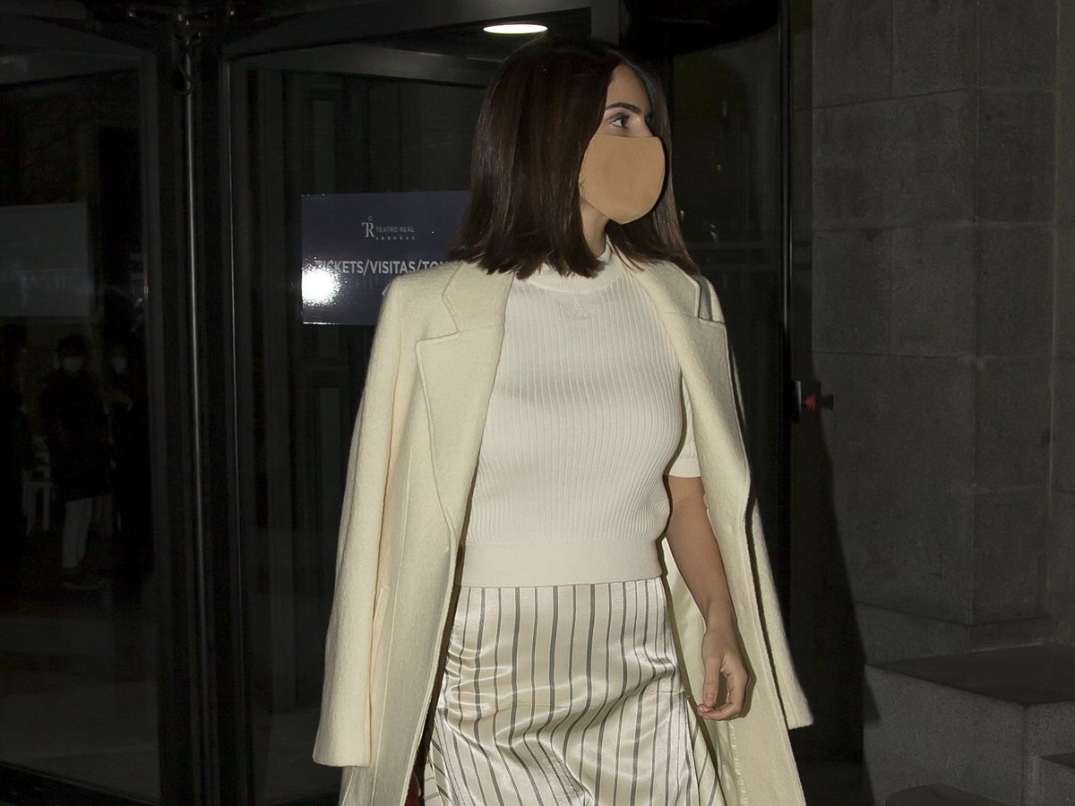 Sofía Palazuelo lució un conjunto de falda y jersey de manga corta en tonos blanco roto y un abrigo por encima de los hombros de la misma tonalidad. En el calzado, la Duquesa eligió unos zapatos negros con tacón bajo, con los que demostró tener una envidiable figura física después del parto.