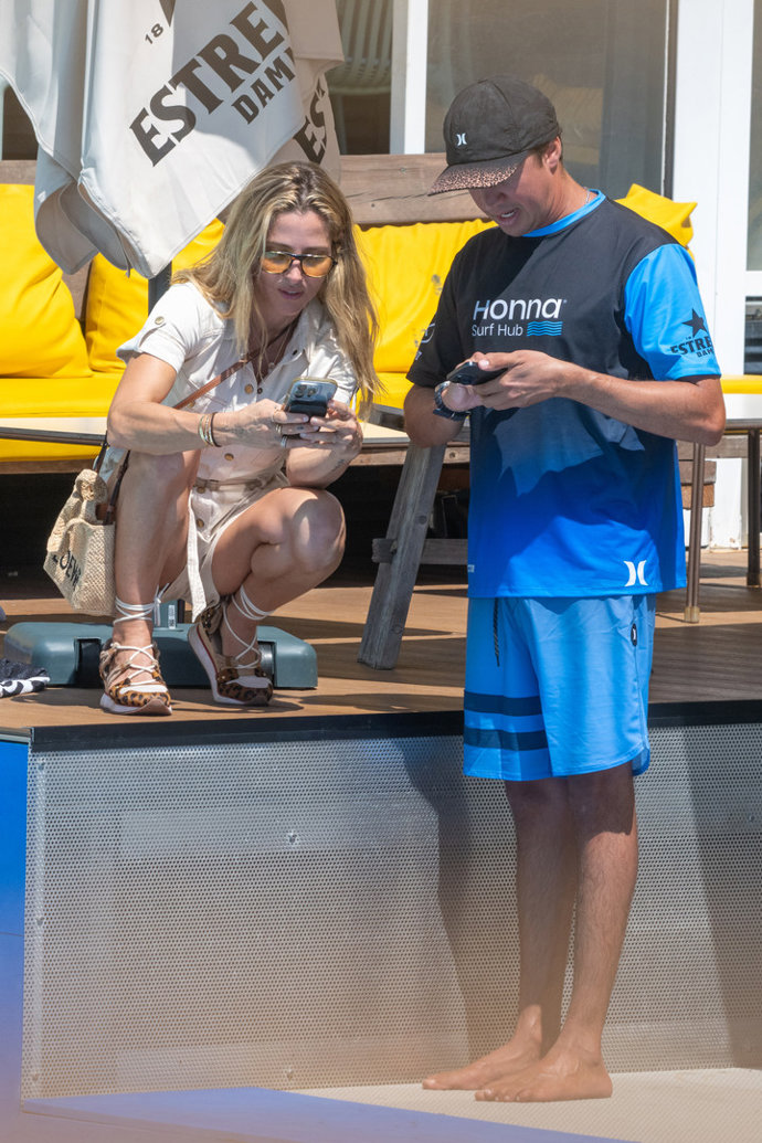 Muy pendiente de sus hijos y disfrutando de cada uno de sus avances, Elsa no les quitó el ojo de encima mientras disfrutaban de la piscina de olas y es que con su teléfono móvil también aprovechó para inmortalizar algunos de los momentos más divertidos de la jornada.