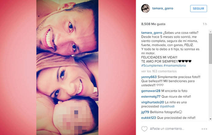 Ahora la familia celebra contenta el quinto mes de edad de su bebé, la alegría más grande que han tenido tras haberlo pasado tan mal por la imposibilidad de la presentadora a tener hijos. Después de haber pasado por todo el proceso de un vientre subrogado, ahora por fin disfrutan de su pequeña.