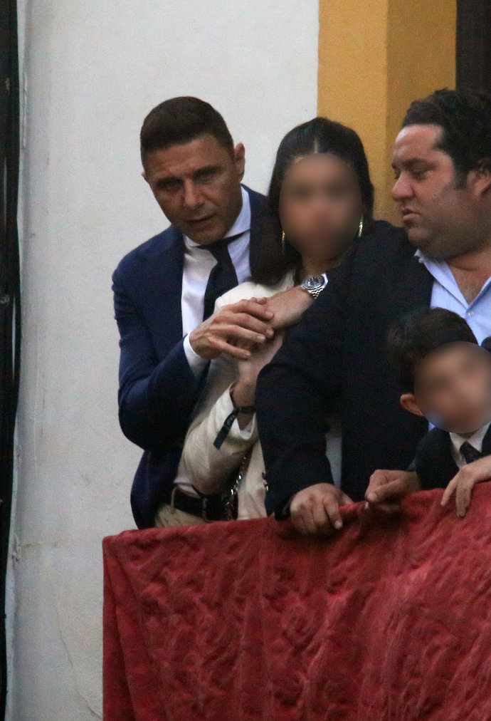 Otro de los rostros conocidos que siguieron las procesiones desde un balcón de La Campana fue el futbolista Joaquín Sánchez, que se mostró muy emocionado al ver los pasos abrazado a una de sus hijas, Salma. Muy querido en Sevilla, el exfutbolista del Betis no dudó en corresponder al cariño de varias personas saludando con su mejor sonrisa mientras charlaba con varios amigos.