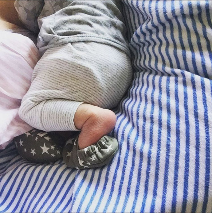 "Cómo me voy a divertir vistiéndote Pepe...hasta que me dejes claro", afirma la feliz mamá tras compartir una foto de su hijo vestido con un jersey y unos patucos de estrellas.